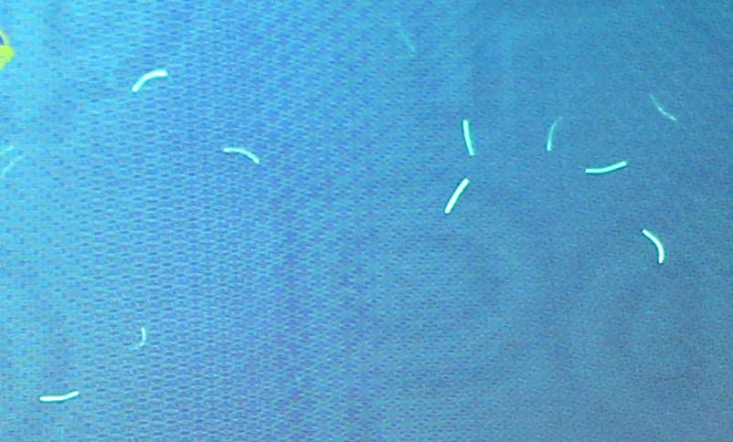Люминесцентные волокна, святящиеся при воздействии ультрафиолета, видны при применении ультрафиолетового купюродетектора. |